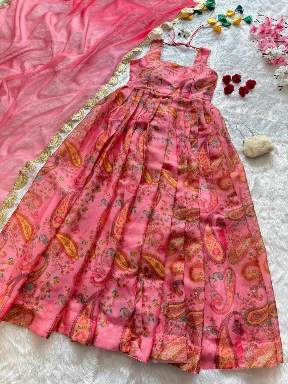 Anarkali Gown – Digital printed Jimmy Organza silk suit with a huge, elegant flair
