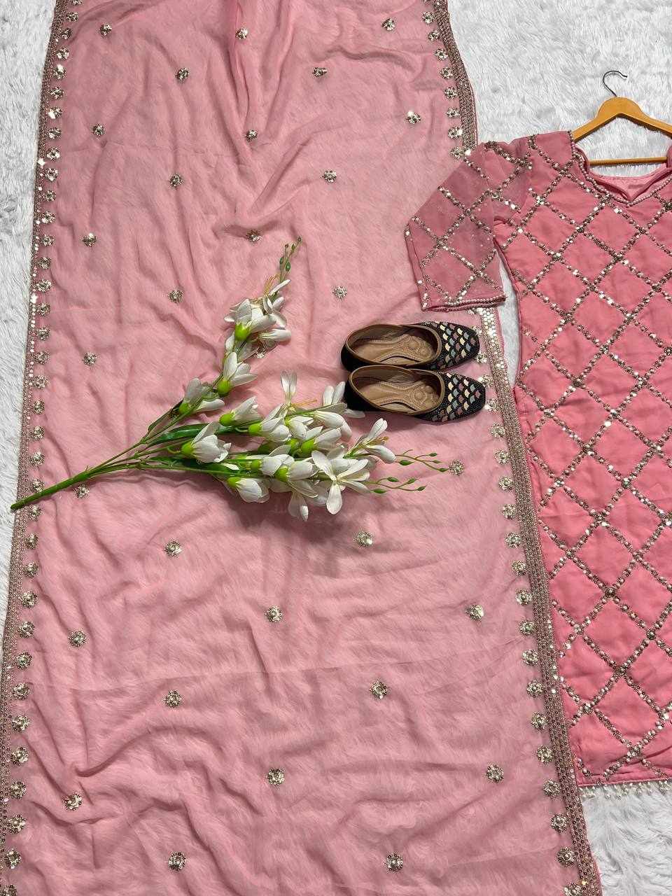 MF 409 New Fancy Embroidered Pink Dress