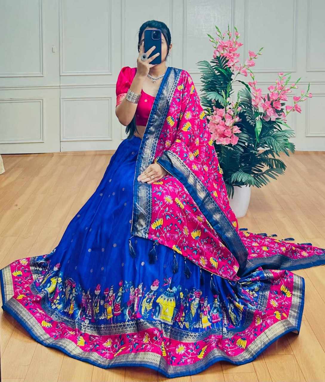 PIYU 10-2 Silk Chaniya Choli With Viving Foil Royal Blue Lehnga