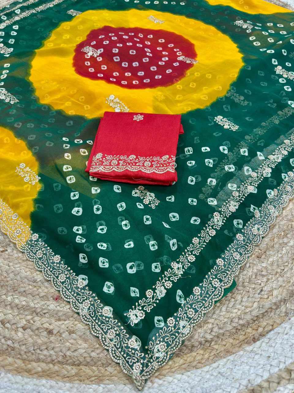 | Name : | PIYU P1051 LEHERIYA BANDHANI-3 Green Saree |