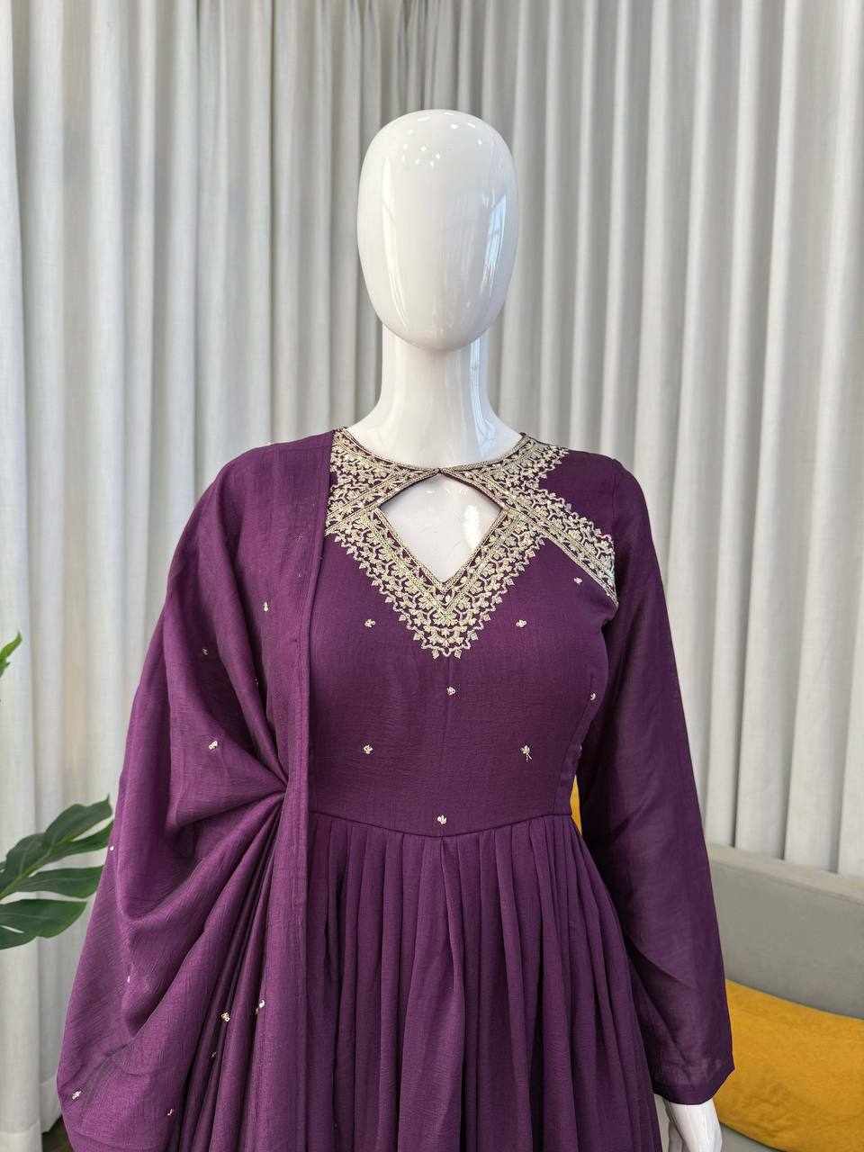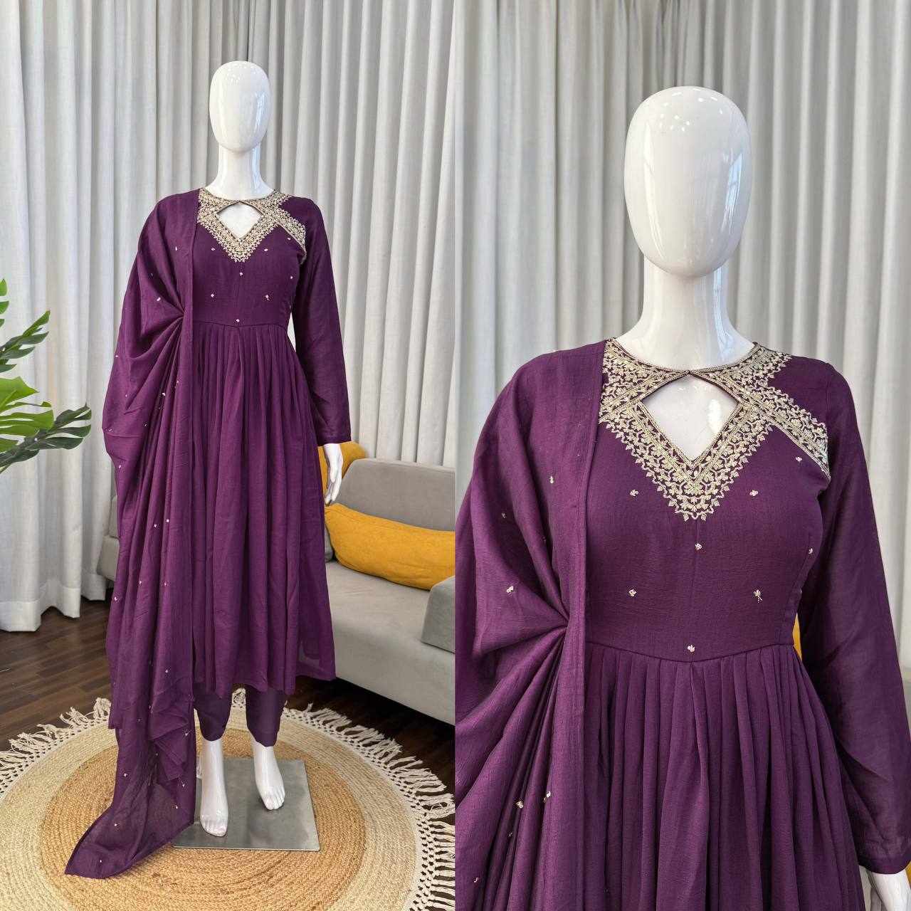 JKWH 998 Pure Fine Cotton Febric Embroidery Work A-line Kurti Set With Pocket