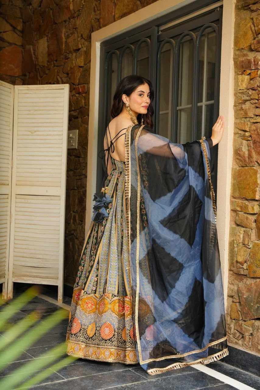 Anarkali Gown – Digital printed Jimmy Organza Silk Anarkali suit featuring a luxurious huge flair for an elegant, flowy look
